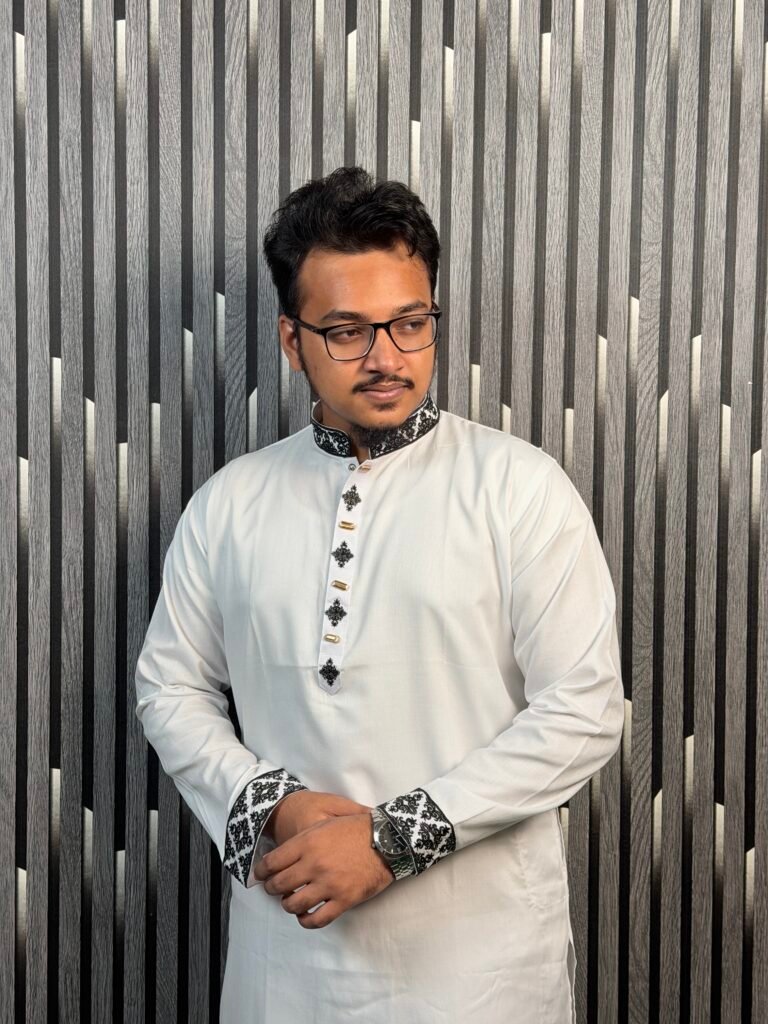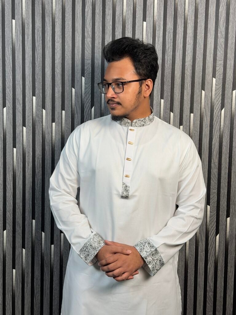 White songko (সাদা সংক প্রিমিয়াম কটন পাঞ্জাবি )