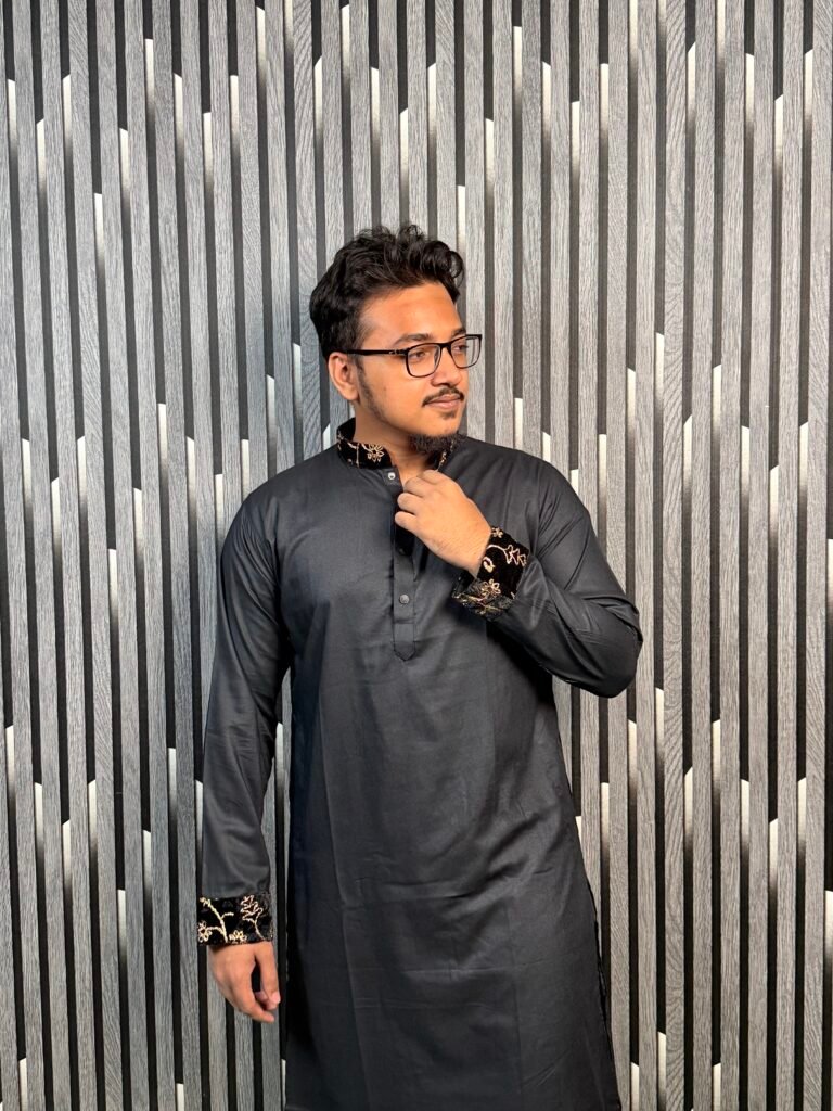 ব্ল্যাক কালার প্রিমিয়াম মাইক্রোস্টিজ সলিড পাঞ্জাবি – 42