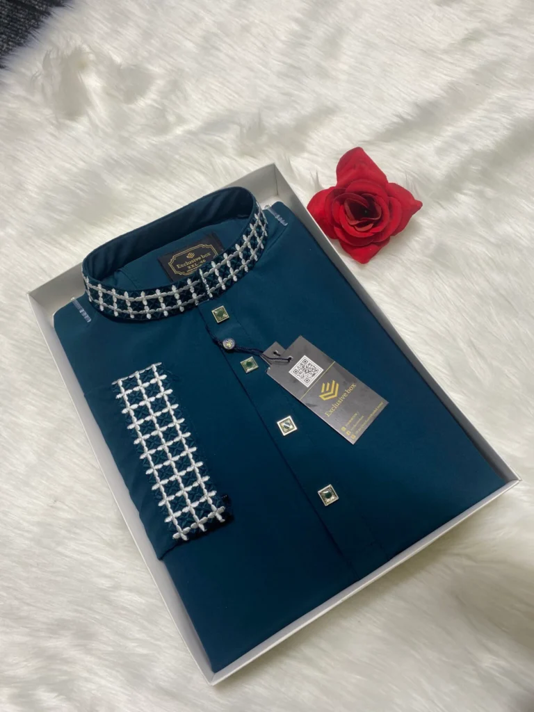 পেট্রোল ব্লু কালার প্রিমিয়াম মাইক্রোস্টিজ সলিড পাঞ্জাবি