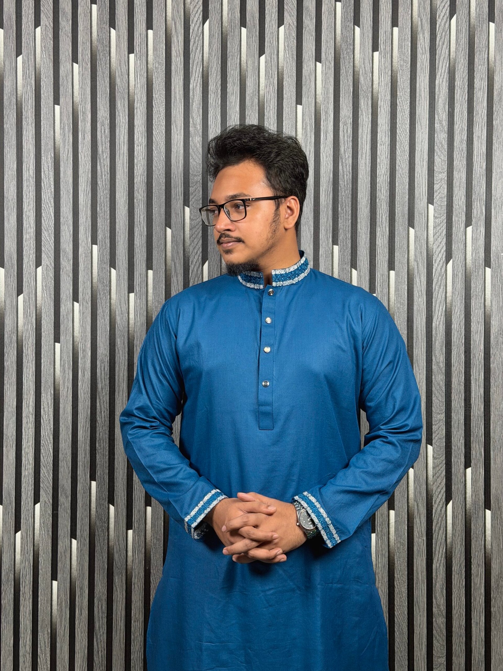 ভিড়ের মাঝে নিজেকে আলাদা করতে বেছে নিন আমাদের এই রাজকীয় রয়েল ব্লু পাঞ্জাবি। সেরা মানের ফেব্রিক আর নিখুঁত ফিনিশিংয়ে তৈরি এই পাঞ্জাবিটি ক্যাজুয়াল বা ফরমাল যেকোনো অনুষ্ঠানে আপনাকে দেবে এক স্মার্ট লুক।